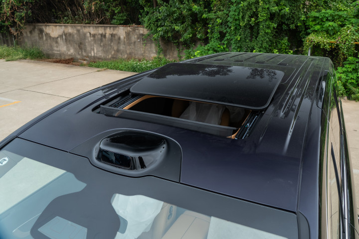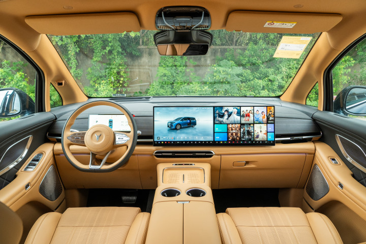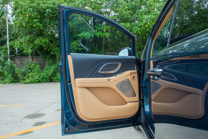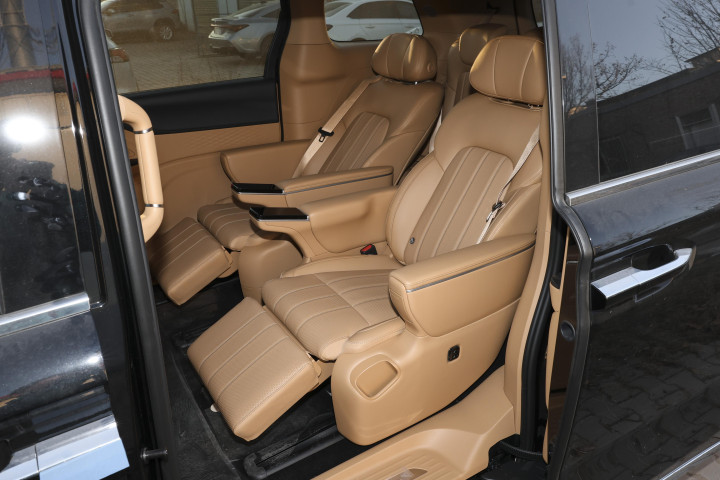 细节设计上的贴心之处还有很多。中央通道宽度达到了180mm,从二排走到三排非常从容,不用侧身挤过。考虑到老人和小孩上下车的便利性,车辆的台阶高度设计为360mm,还配备了862mm的抓手,在迎宾模式下,底盘会自动下降30mm,进一步降低上下车的难度。全系标配的静音电吸门,开关门时动作轻柔,既优雅又能避免夹手。AR感应后备箱门也很实用,双手拿着东西不方便开门时,用脚轻轻一扫就能开启。