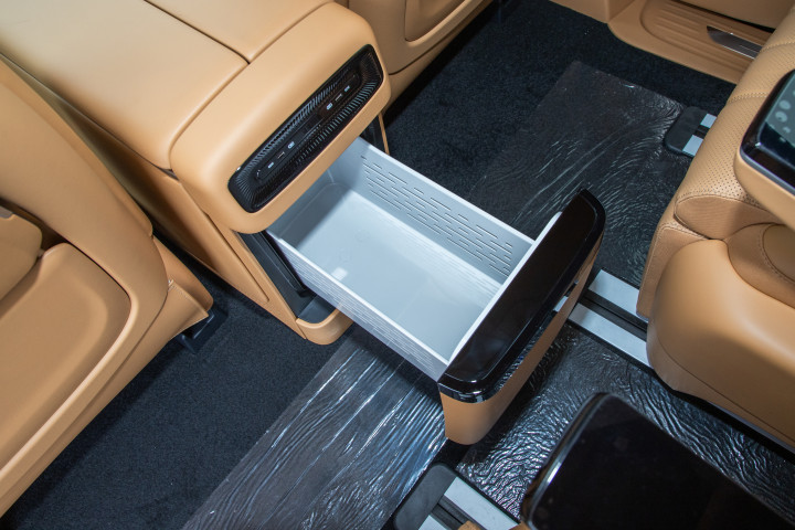 车内还配备了13升双开门冷暖智能冰箱,带孩子出行时可以温奶,大人想喝冷饮或暖茶也能满足,非常贴心。 后排的娱乐配置也很齐全,17.3英寸的3K高清娱乐屏尺寸很大,画质清晰,带孩子出行时放个动画片,就能让后排变得安静不少,堪称“哄娃神器”。音响系统是由英国之宝调音的,全车配备了22个扬声器,再加上头枕音响,形成了全景声学系统,不管是听音乐还是看电影,都能带来沉浸式的影音体验,大人小孩都能享受其中。